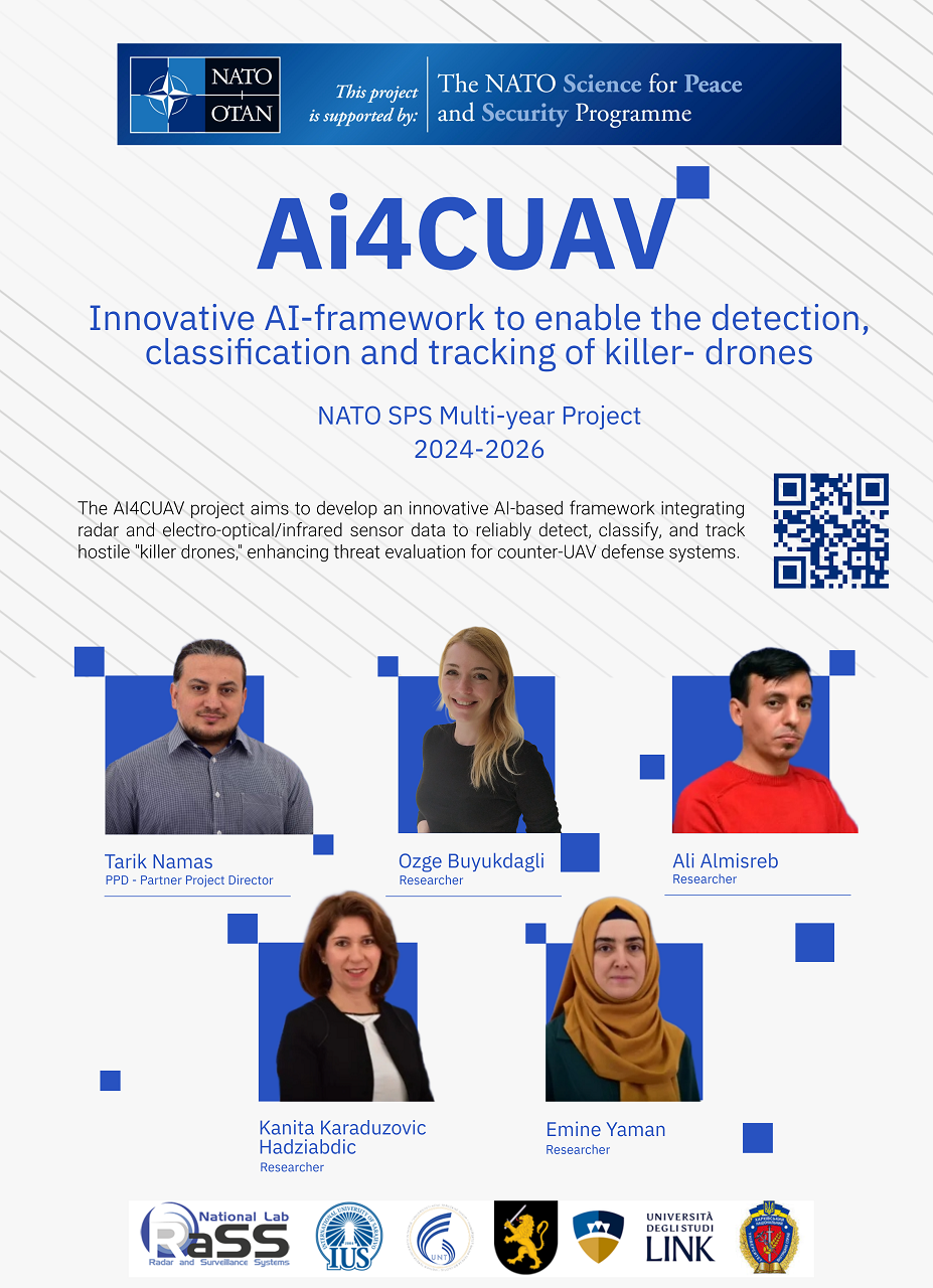 Ai4CUAV Projesi (“Katil dronların tespit, sınıflandırma ve takibini mümkün kılacak yenilikçi yapay zekâ temelli çerçeve”) NATO Bilim Barış ve Güvenlik (SPS) Programı tarafından destekleniyor. Proje, yapay zekâ ve çoklu sensör verilerinin entegrasyonu yoluyla ortaya çıkan güvenlik tehditlerini çözmek amacıyla üniversiteleri, araştırma ekiplerini ve operasyonel uzmanları bir araya getiriyor.